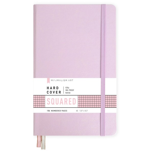 Minimalism Art, Premium Hard Cover Notebook Journal, Medium, A5 5.8" x 8.3", Squared Grid Page, Pink, 234 Numbered Pages, Gusseted Pocket, Ribbon Bookmark, Ink-Proof Paper 120gsm