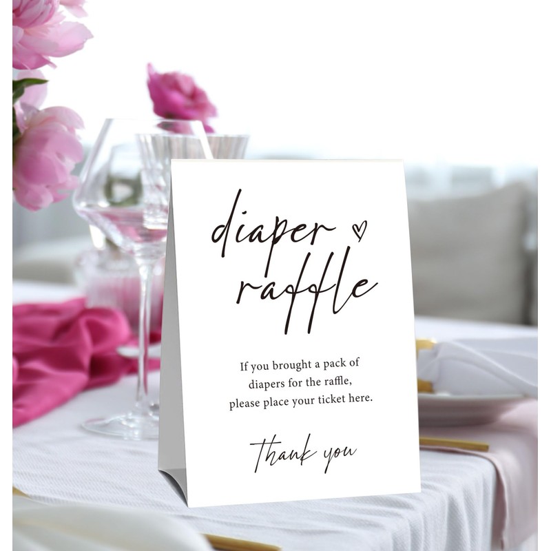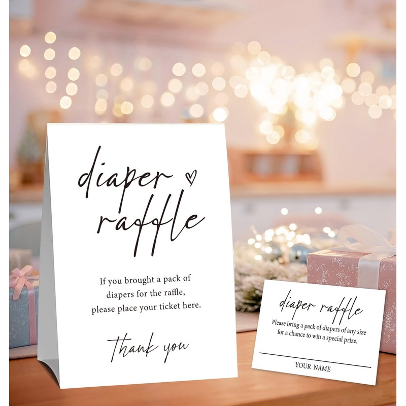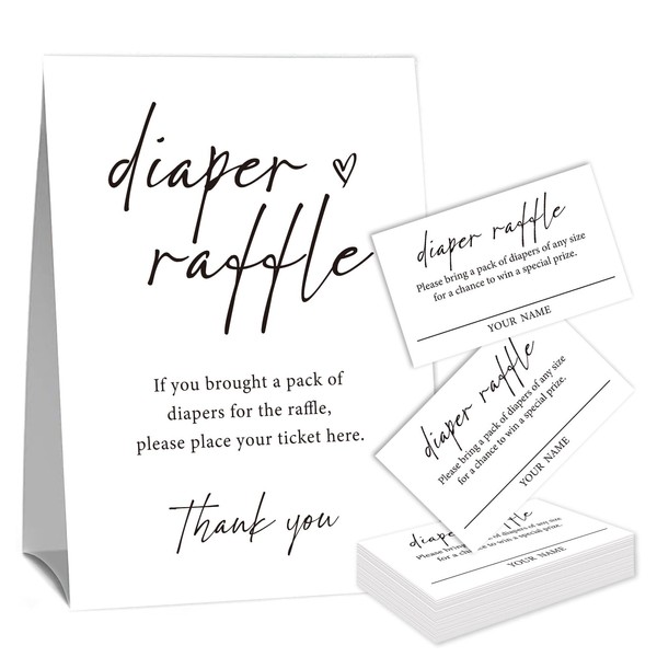 Minimalism Baby Shower Diaper Raffle Cards (1 Standing Sign & 50 Guessing Cards),Guess How Many Diaper Raffle Sign for Baby Shower,Funny Table Games for Babys ShowerS,Bring a Pack of Diapers to Win Prize