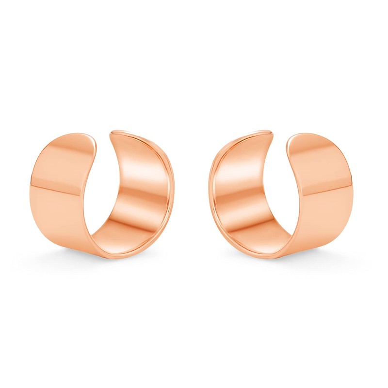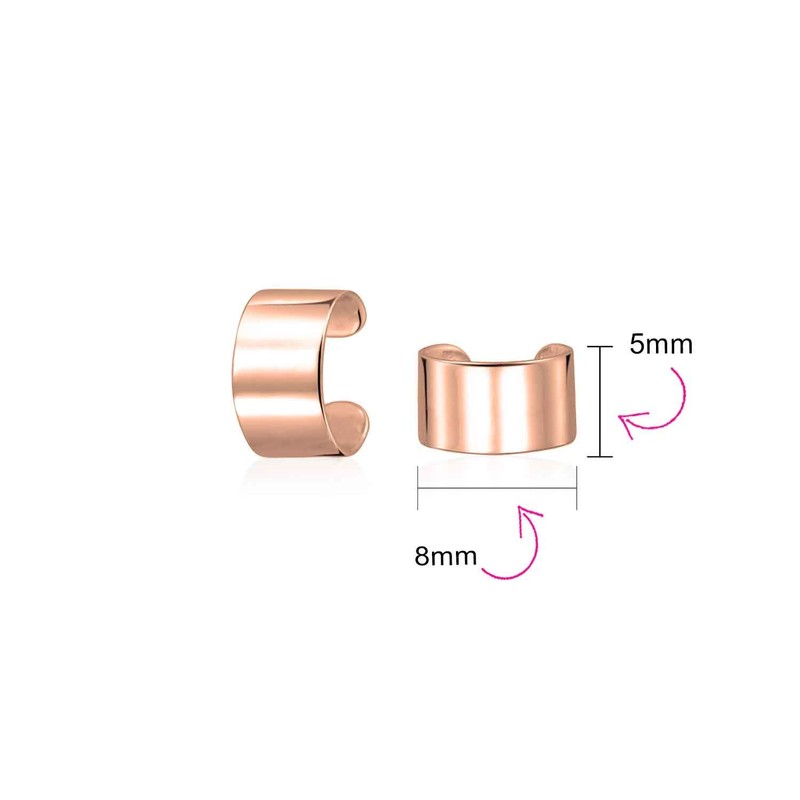 - Infuse radiant modern fashionable style with a minimalist feel into any ensemble with these sophisticated ear cuff earrings for non pierced ears. Accented by a 5mm wide, lustrous, ear cuff style finished in glowing, rose or yellow gold plated .925 sterling silver.