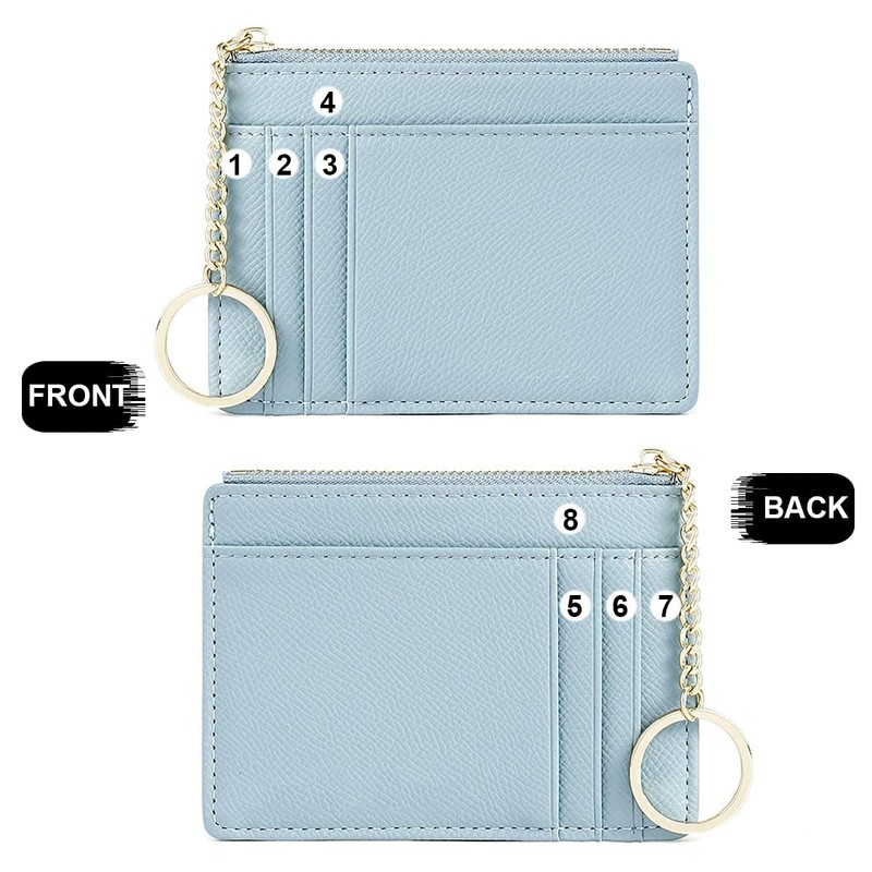 - STRUCTURE:8 x Card Slots,1 x Zipper Bag. This slim wallet can carrying your ID,cards,and plenty of cash. Compact and useful for your daily use.