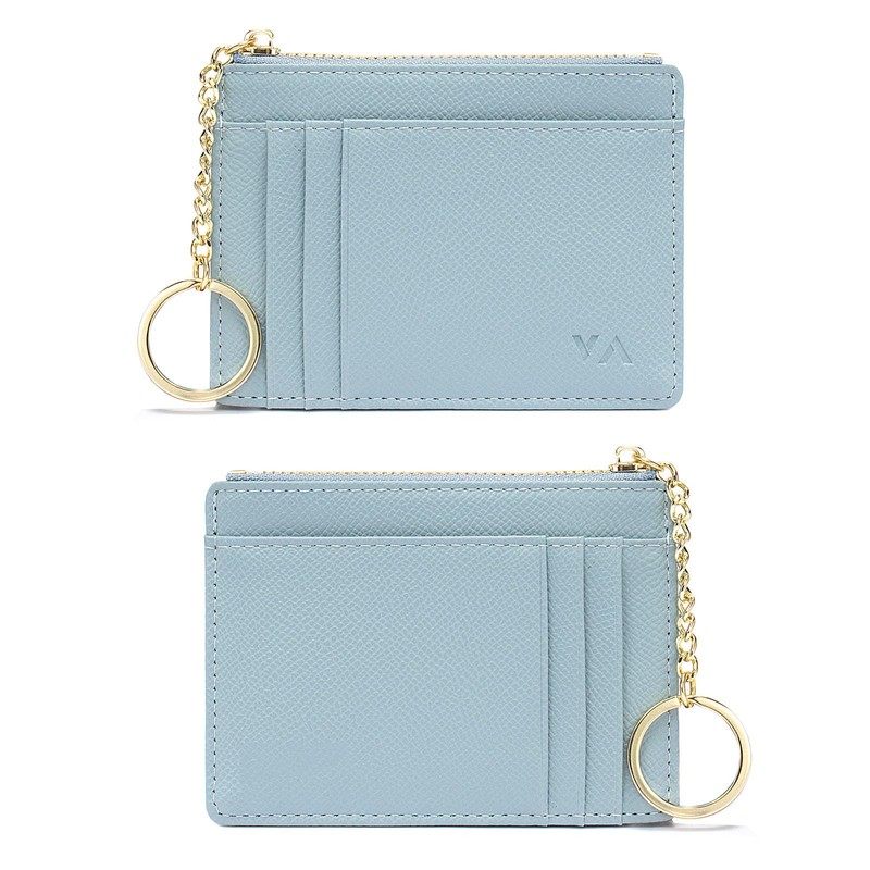 Minimalist Small Leather Card Holder Pocket Wallet Womens Coin Purse Handbag (Blue)