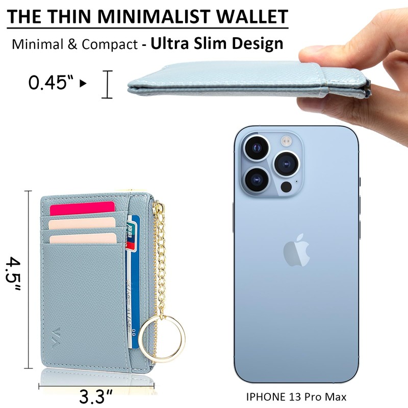- ULTRA SLIM MINIMALIST:4.6"H x 3.1"W x 0.2"D(Only 0.6oz), Mini Size ,suits to most purses, handbags or pant pocket. Easy to Carry anywhere.