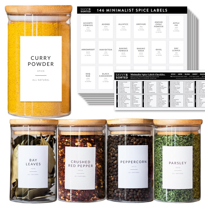 Organize your kitchen in style with Savvy & Sorted; Minimalist Spice Labels