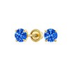 Minimalist Tiny Cubic Zirconia Royal Blue Simulated Sapphire CZ Round Solitaire Stud Earrings Real 14K Yellow Gold Screw Back 3MM