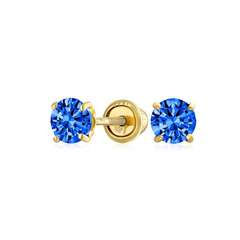 - BEAUTIFUL FOR GIRL - An exquisite choice for the favorite September born in your life, these gorgeous, 14K gold, stud earrings are accented by a vivid 3mm, simulated sapphire CZ With a safety screwback.