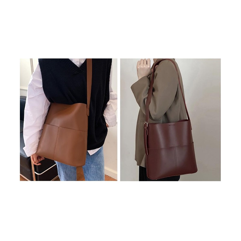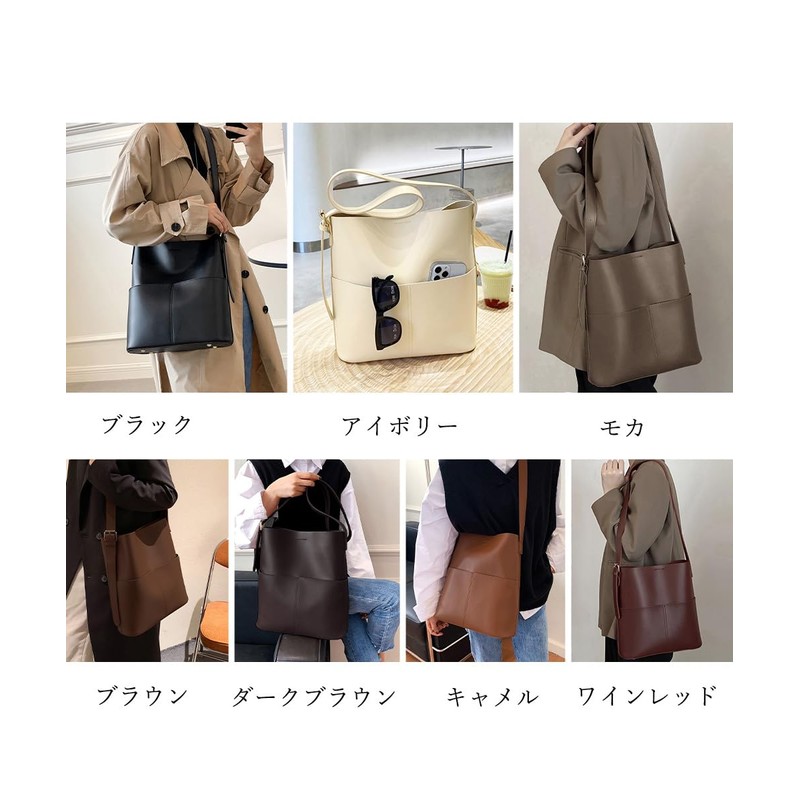 - This shoulder bag has a simple bucket-shaped silhouette for a mature and cute shoulder bag with a wide belt that creates a stylish atmosphere. There is a pocket on the front that fits your smartphone perfectly. It is convenient for storing small items you want to take them out quickly. The shoulder strap is adjustable and can be worn as a shoulder bag or diagonally as a shoulder bag