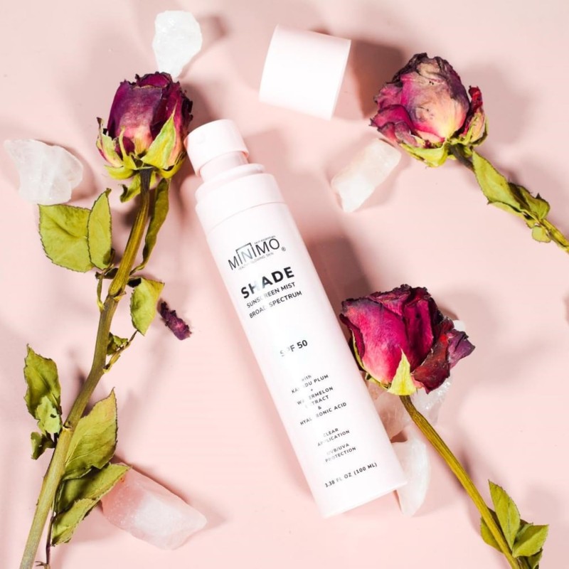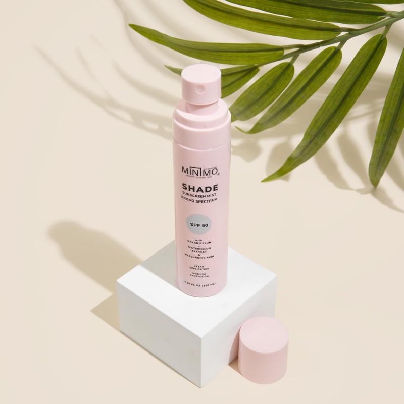 Minimo Shade SPF50+ Hydrating Sunscreen Mist Brightens Dark Spots Soothing Spray, Travel Size Serum refreshing hydrating Spray for Sensitive Skin 3.38 fl oz