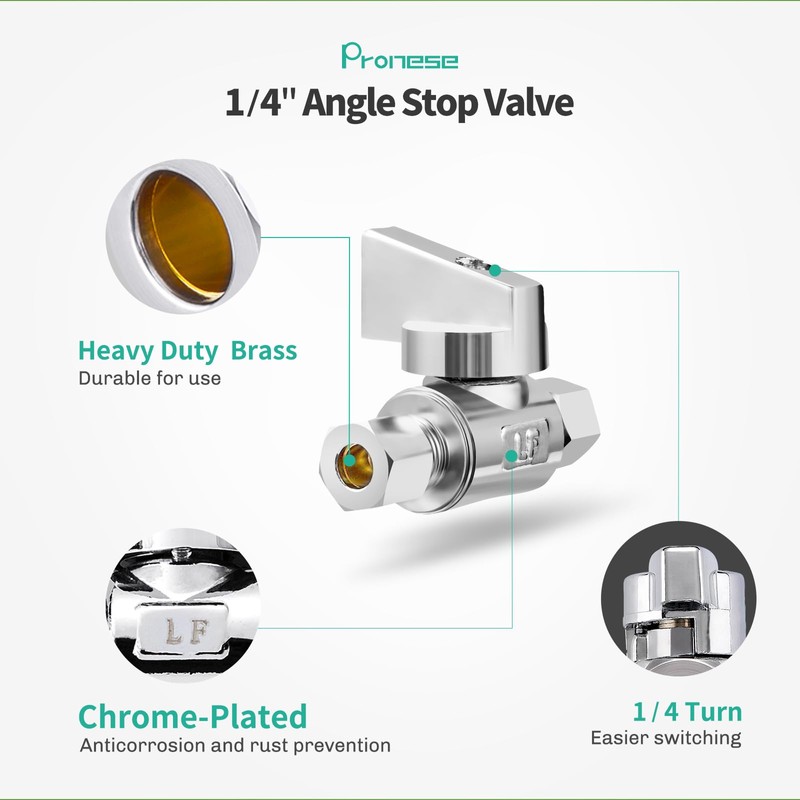 Minimprover 4 Pack Premium Brass 1/4" Compression x 1/4" Compression Angle Valve Quarter Turn Water Straight Angle Valve