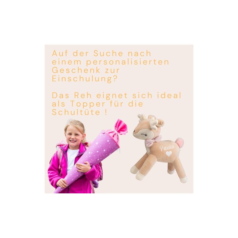 - Als Topper für die Zuckertüte - das personalisierte Reh eignet sich aufgrund seiner Größe perfekt als Geschenk zur Einschulung, da es auf die Schultüte passt und so zu einer liebevollen Erinnerung wird