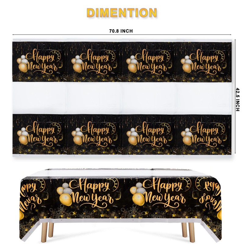 - 【Table covers Size】 rectangle plastic tablecloth Size Approx. is 70.8” X 42.5”, for multiple Rectangle tables. Disposable tablecloths Print with “HAPPY NEW YEAR”.