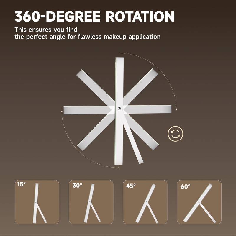 - Versatile 360 Degree Rotation & Stable Positioning: This lighted vanity mirror can rotate smoothly a full 360 degrees, allowing effortless angle adjustment for detailed viewing. Its robust mechanism locks securely at any position, ensuring optimal stability during use.