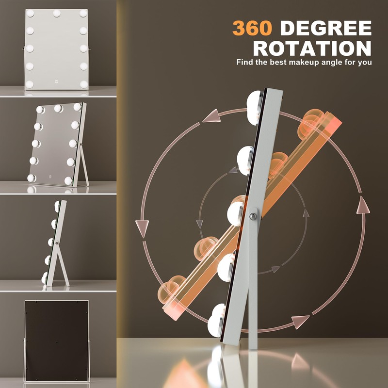 - 360° Full-Range Adjustment:The vanity mirror with lights rotates smoothly 360°, locking securely at any angle. Position your Make up Mirror horizontally or vertically for detailed contouring, lash application, or skincare routines without shadows