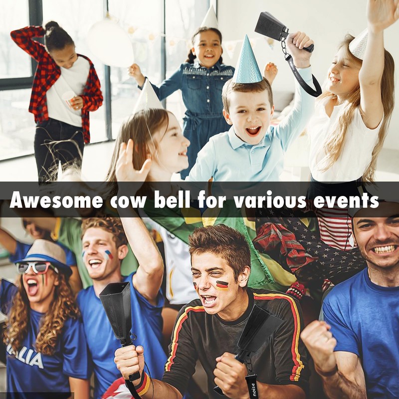 - Super Loud Cow BellShaking can make a huge sound, long vibration time, and long echo. The loud cowbells for sporting events, creating cheers and sounds in competitive sports, weddings, concerts, and family gatherings.