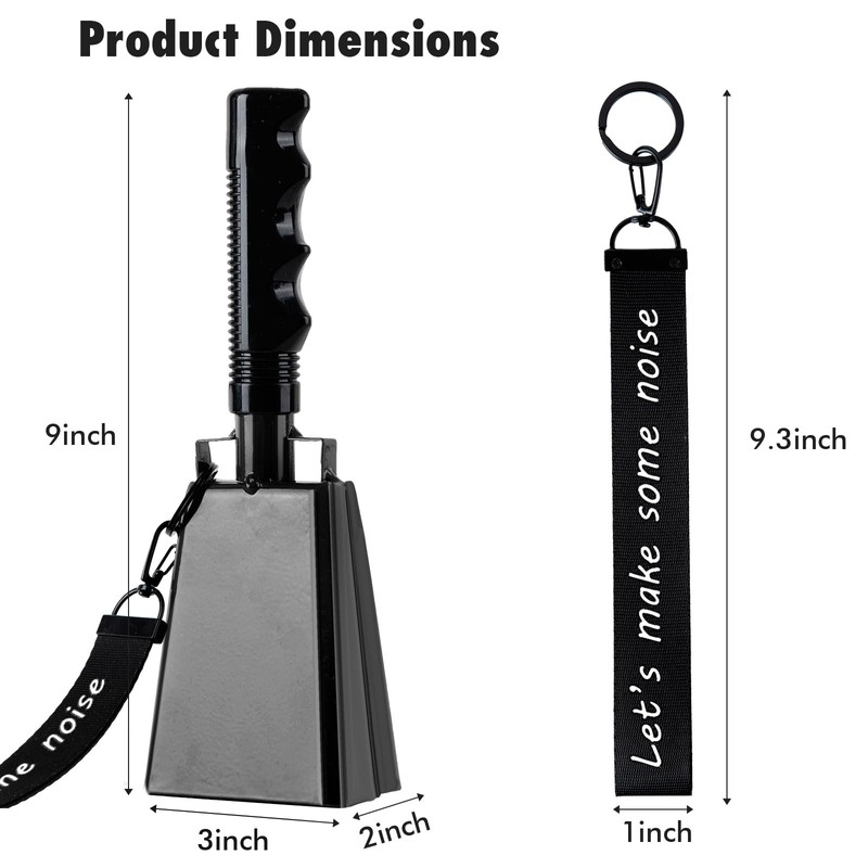 - Noise MakerOur Metal Cowbell With Handle Measuring 9 In X 3 In X 2 In Comes With A Soft Wrist Strap. Customize Your Noise Makers For Events, And Other Occasions Such As Football, Baseball, Soccer Game, Teacher Gifts, Weddings, Cheer Competition, Skiing, And Bike Races With Our 2 Pack Cow Bell.