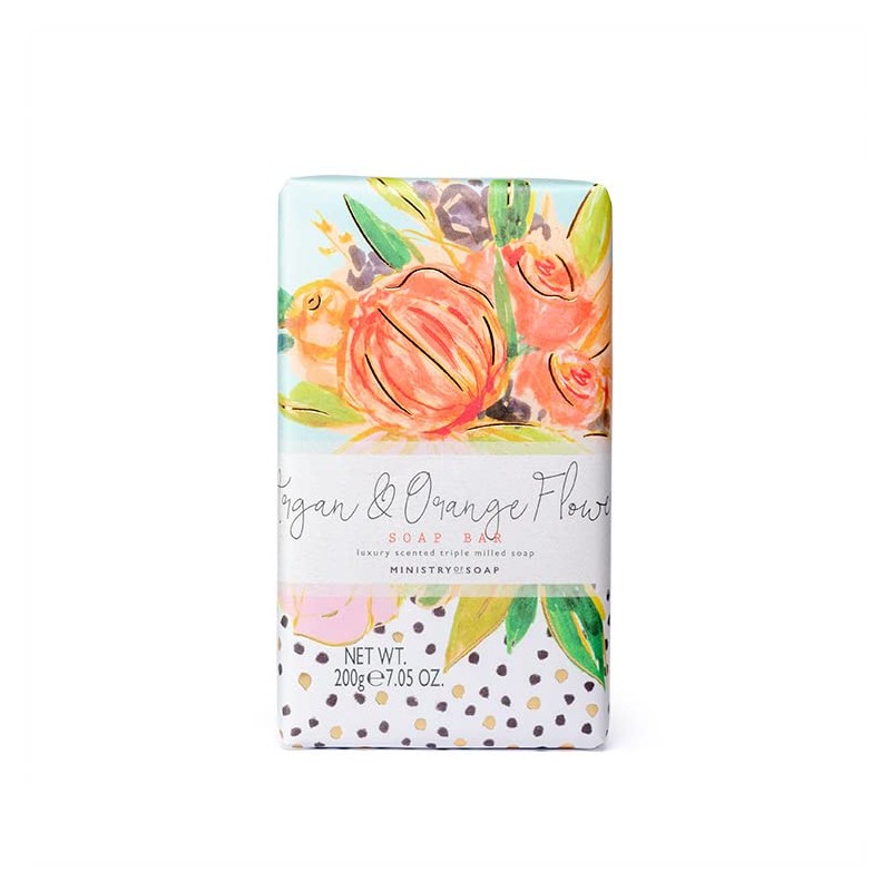 Ministry of Soap Painted Marks Wrapped Soap, Naturally Coloured, Triple-Milled Soap, Argan and Orange Flower 200g