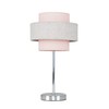 - Modern Touch Table Lamp in a Polished Chrome Finish with a Pink & Grey Herringbone Cylinder Shade