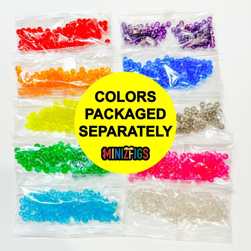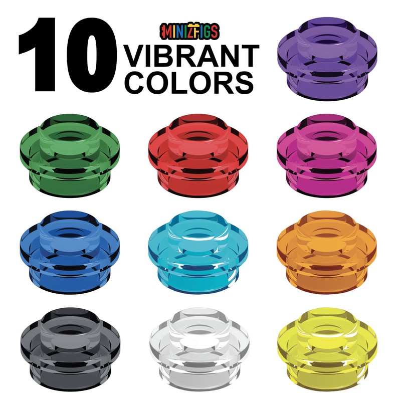 Introducing Minizfigs 1x1 Round Plates! This set is perfect for any young architect or artist in your life. With 1050 pieces at your disposal, the possibilities are endless. These transparent blue, pink, clear, red, yellow, green, orange, pruple plates will make your creations stand out and come to life. Whether you're building a mosaic masterpiece or creating a waterscape project, our plates are guaranteed to enhance your designs. Not only are these plates vibrant and versatile, but they are also 100% compatible with major brands. That means you can easily integrate them with your existing collection of building blocks. This bulk set of parts will provide a treasure trove of options for your creations, allowing you to unleash your creativity in ways you never thought possible. Our 1x1 round plates are perfect for constructing water scenes or adding a pop of color to your designs. They can be used as filler pieces to complete your project or as the main attraction. Even better, our plates are not just for building. They can also be used to create your own message board or art piece. With our plates, you have the power to create anything from a mixels art masterpiece to a mini building model. Ideal for kids age 8-12, our round plates can be used to create their own custom jewelry, turning them into designers! And for those who love creating their own games, our plates can be integrated into a custom board game set. Our plates are also great for any build requiring clear, transparent bricks or tiles. This gives you the flexibility to create designs that are truly unique. The Minizfigs 1x1 Round Plates aren't just building blocks; they're a canvas for your imagination. With our plates, you're not just playing; you're creating. You're not just building; you're discovering. So why wait? Dive into the world of mini building blocks and see where your creativity takes you!
