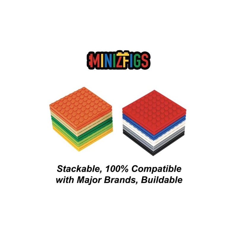 Introducing the Minizfigs 8x8 Building Toy Plates, a classic set that brings endless fun and creativity to children. This pack comes with a whopping 20 pieces of 8x8 building plates that can be put together in countless ways, making it an ideal addition to any collection of kids building toys. Our Minizfigs blocks are perfect for kids, making this set versatile and suitable for a broad age range. These bricks are designed to stimulate creativity, enhance fine motor skills, and promote cognitive development. As such, they serve as excellent stem toys that combine fun and learning in one package. These building blocks for kids are not your ordinary building toys. They are designed to encourage children to explore their creativity, build intricate structures, and develop their critical thinking skills. They are compatible with most building block sets, making them a useful addition to your child's collection of kids blocks. Tthese blocks serve as a great tool for them to express their creativity and develop their problem-solving skills. Moreover, for toddlers ages 3+, these blocks can serve as an excellent toy to help them develop their hand-eye coordination and fine motor skills. The bulk lego compatable plates in this set are durable and made to last, ensuring that your child can enjoy hours of creative play. The bricks in this set are available in various vibrant colors, enhancing their appeal to kids and making the building process even more enjoyable. When it comes to building toys for kids, Minizfigs stands out as a brand that combines quality, safety, and value for money. Each plate is made with precision and attention to detail to ensure that they fit together perfectly, making them an excellent alternative to off-brand legos. This Minizfigs set is a must-have for any child who enjoys building and creating. It's not just a toy; it's a tool for learning and development. Whether you're looking for a gift for a boy or a girl, this set is sure to be a hit. Get the Minizfigs 8x8 Building Toy Plates today and let your child's creativity soar. Whether they're building intricate structures or simply enjoying the process of creation, these bricks are sure to provide hours of fun and learning.