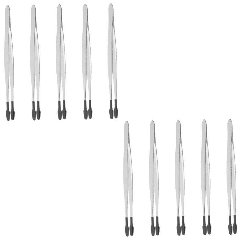 Minkissy 2sets Craft Tweezers Rubber Tips Jewelry Tweezers Set Metal for Coin Collecting 5pcs*2