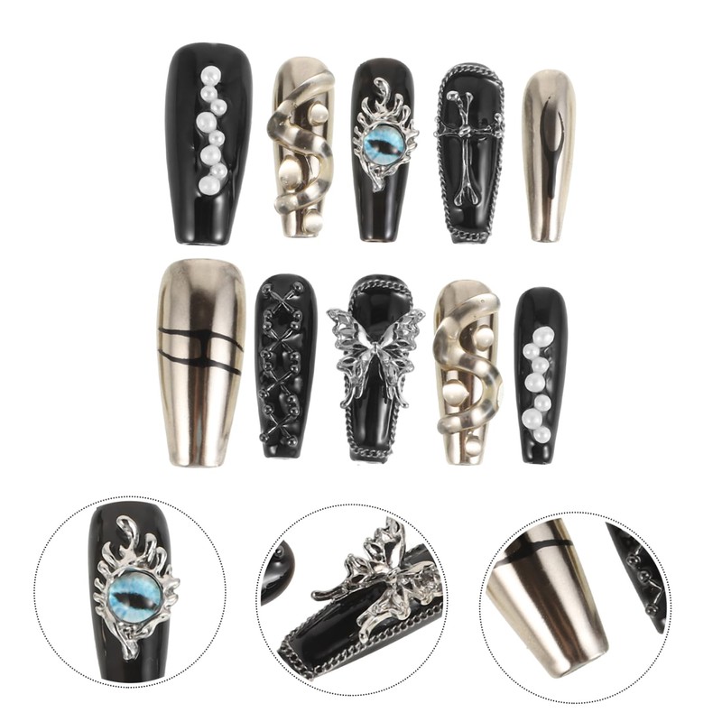 minkissy Elegant Gothic Press Nails 10 Pieces Handmade False Nails Cross Butt...
