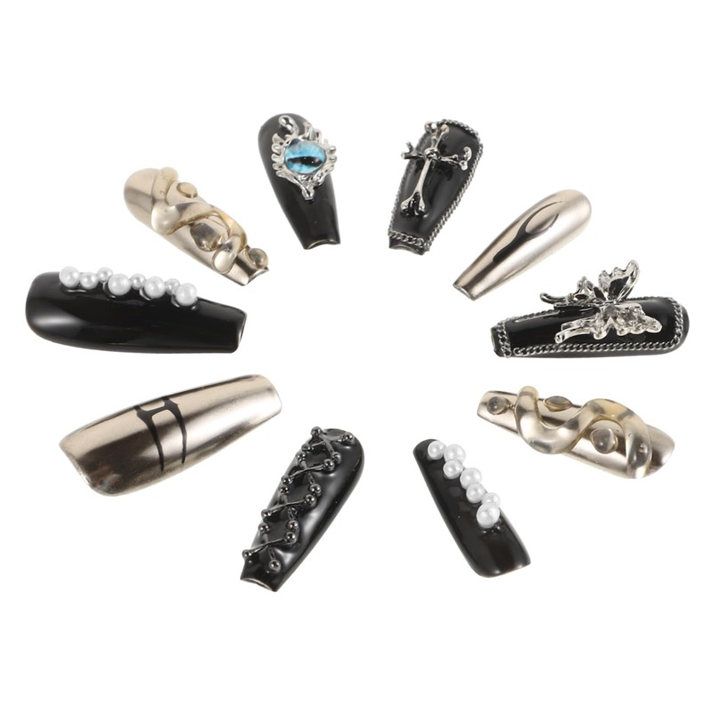 -Simple to apply: these press on nails are designed for easy application, allowing you to achieve a looking manicure without the need for a salon visit goth nail charms