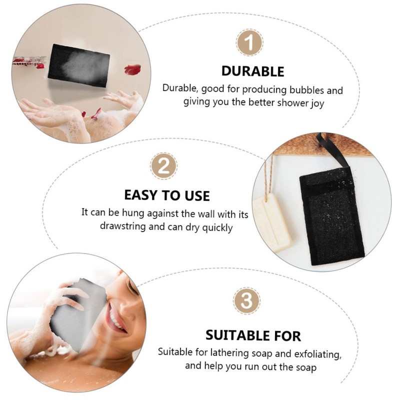 • Soap bubble pouch: great cleansing material goes excellent in exfoliating or body scrubbing without being too rough.