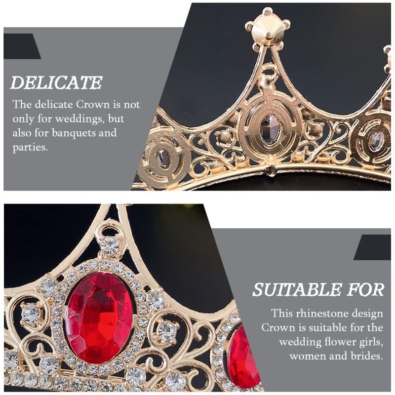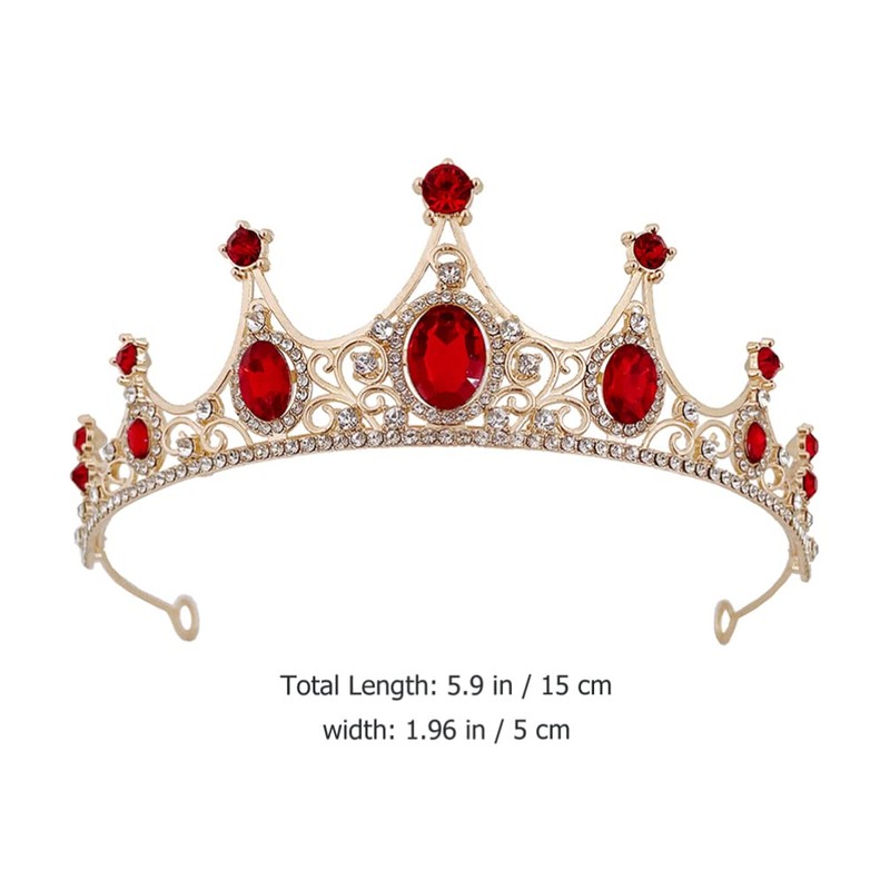 minkissy Rhinestone Crown Wedding Headband Birthday Princess Tiaras Hair Accessories Gifts for Women Red
