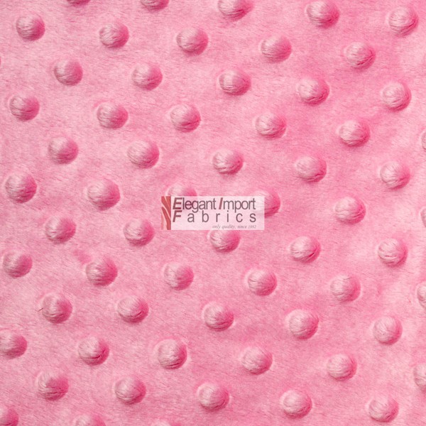 Dimple Dot Minky Fabric is an ultra soft and comfy type of fabric that can be used for a wide array of purposes. silky soft and cuddly Minky Dimple Dot Fur Fabric has a smooth mink-like surface with raised dots and dimple like embossing Among it being a very warm type of fabric, it has a raised dot pattern. This fabric is ideal for baby blankets and anything baby related. Minky Fabric does not require pre-washing before being sewn into your final project. Can be used for Children's blankets, Toys, Children's clothing, costumes, Stuffed animals, Childrens Products, Throw Blankets. The width of this fabric is 58"/60", is sold by the yard and shipped in continuous yards. MADE FROM 100% POLYESTER WIDTH: 58-60" RAISED DOT PATTERN ULTRA SOFT MATERIAL WEIGHT: 1 LB PER YARD THICKNESS: 3 MM