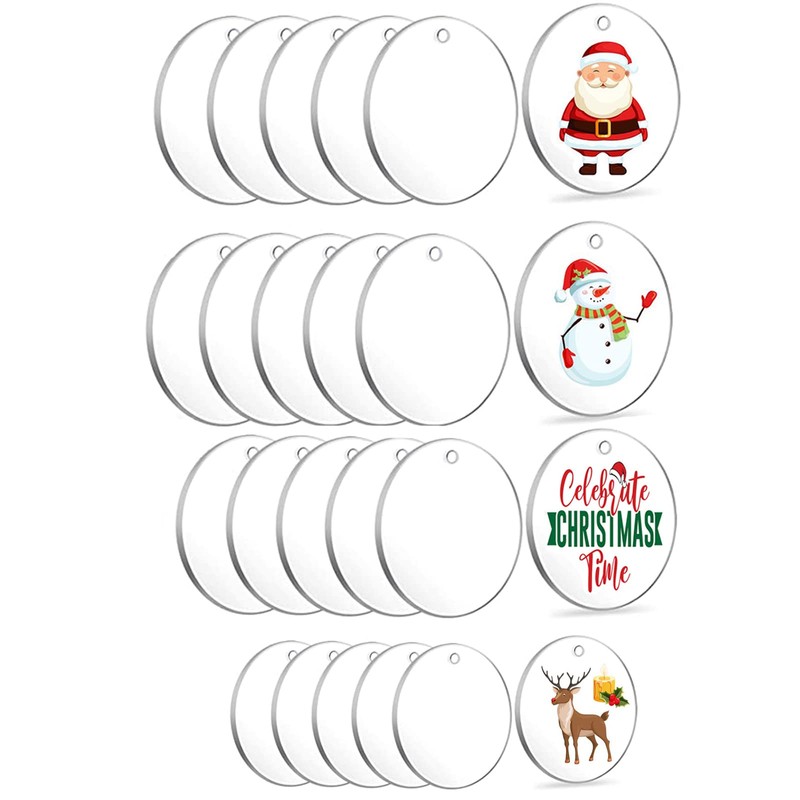 Minlon 20 pieces acrylic transparent circle set, clear acrylic plates, round acrylic discs, Christmas tree decoration for DIY craft project sign picture frame display