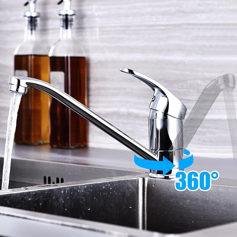 - 360° ROTATABLE DESIGN The kitchen faucet has a 360 degree rotating design on the faucet, which is suitable for double sinks, and can take care of all the details when washing dishes, which is more convenient for daily cleaning and use.