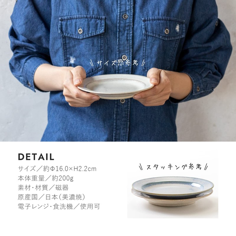 Mino Pottery Mino Ware Curio 160 Plates, 2 Color Set (Beige, Blue Gray)