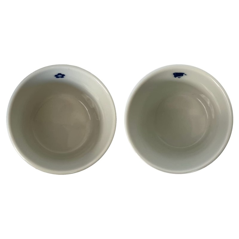 Mino Ware Japan - Japanese Sake Cups Set of 2- Sakura and Mt. Fuji Design, Indigo Color Pottery, 3.9 fl oz, For Cold and Hot Drink, Soup Cup Aperitif Tea Cup with Gift Box