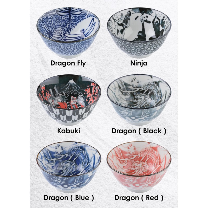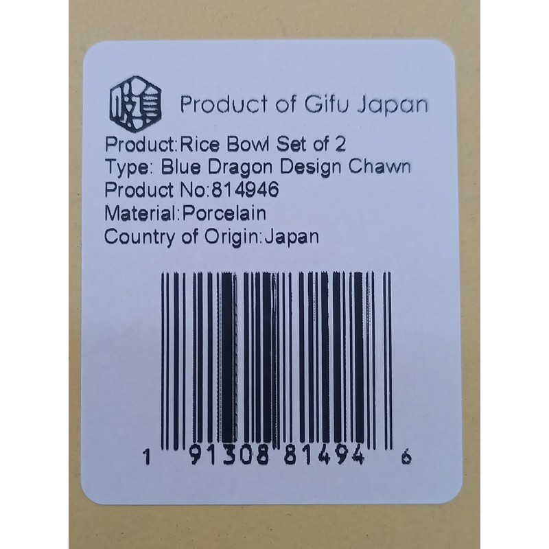 Mino Ware Japanese Rice Bowl, Rice Ramen Noodle Soup Sarada Pasta, Blue Dragon Design Chawn, 2.5 inch 8.8oz, Set of 2