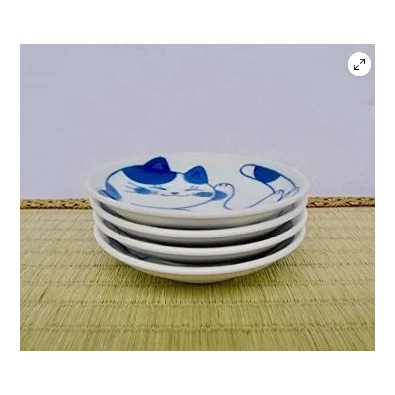 Mino ware Japanese Small Plate Set Ceramic Cute Cats Design Appetizer Dessert Sushi Sauce