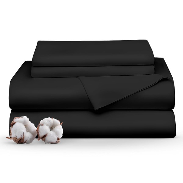 Minor Monkey 100% Egyptian Cotton Sheets Twin Size 1000 Thread Count 4 PC Sheet Set Black for Twin Bed Soft Cooling Extra Long Staple Luxury Hotel Sheets Sateen Weave Fits Upto 16” Deep Pocket