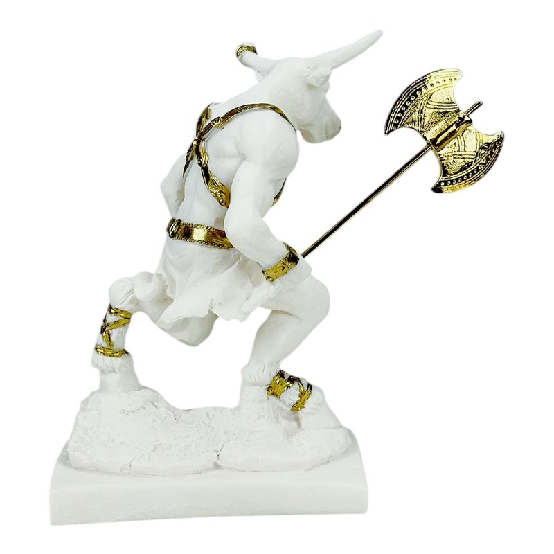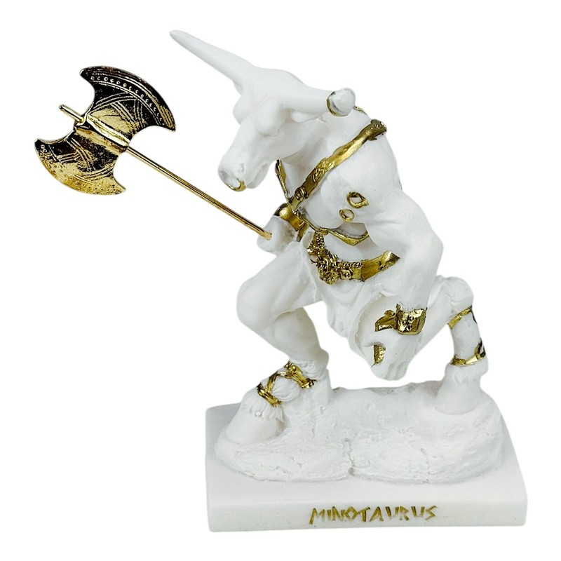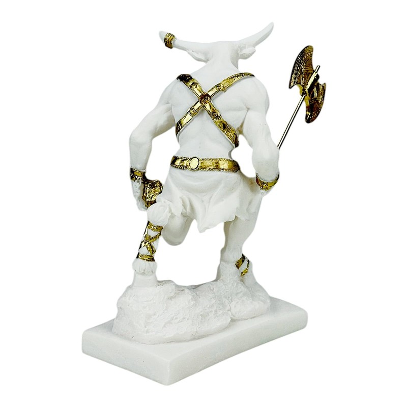 Minotaur with Double Axe Greek Monster Statue Sculpture Cast Marble