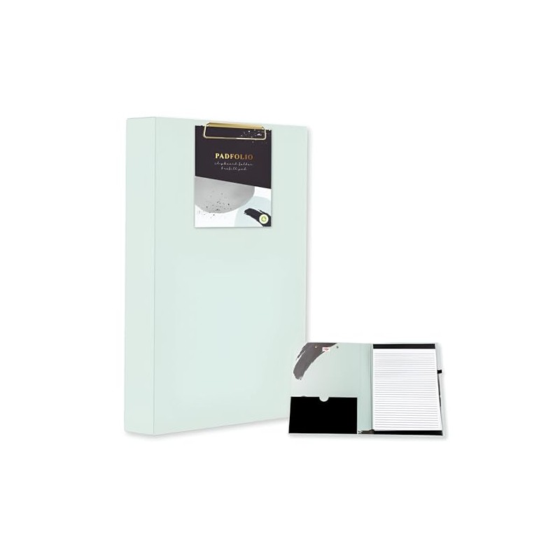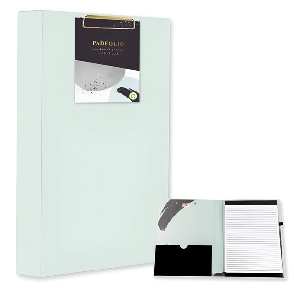 Mint Green A4 Padfolio Clipboard Folder with Notepad Pen Loop & Interior Pocket