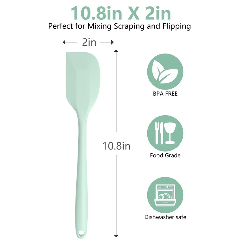 - Seamless Design -The mint green silicone spatula is ideal for mixing, flipping, and scraping all types of food. Its seamless design prevents food and dirt from getting stuck in crevices, making it easy to clean and keep your food safe.