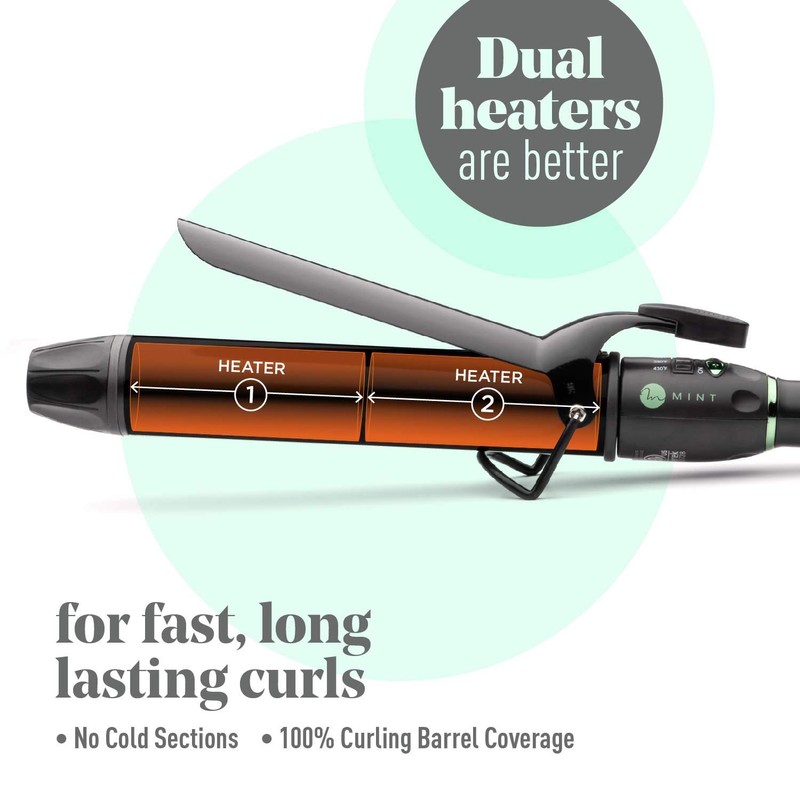 MINT Professional Extra Long Hair Curling Iron 1 1/4 inch | 2-Heater Ceramic Barrel That Stays Hot | 1.25 Inch Hair Iron Curler for Medium to Large Curls | Travel-Ready International Dual Voltage.