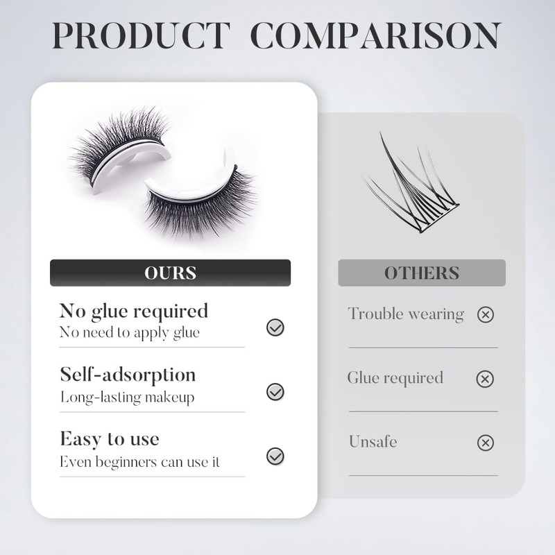 • Instant Application, No-Fuss Glam:Self-adhesive design applies in 3 secondsno glue or eyeliner needed. Streamlines your makeup routine for effortless, time-saving beauty.