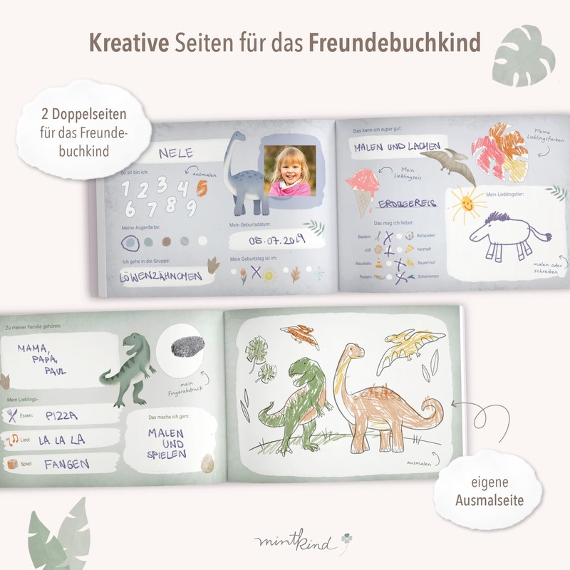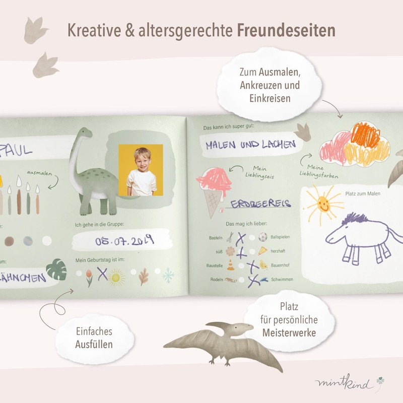mintkind® Friendship Book Nursery - Friendship Book Dino Watercolour with 80 Pages to Fill in - For Boys and Girls - My Nursery Friends Book