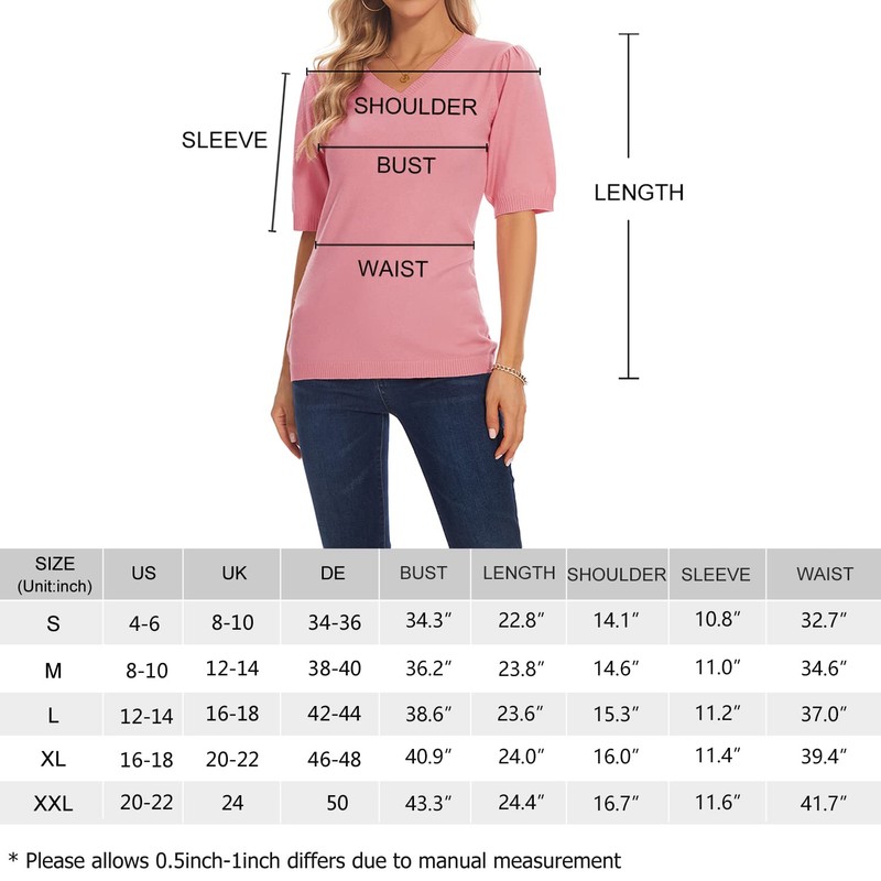 - FEATURES:Casual short sleeve jumper,V neck,Cute puff sleeve,Lovely and soft,Knitted Sweater,ribbed collar cuffs and hemline,it's easy to create an elegant new look.