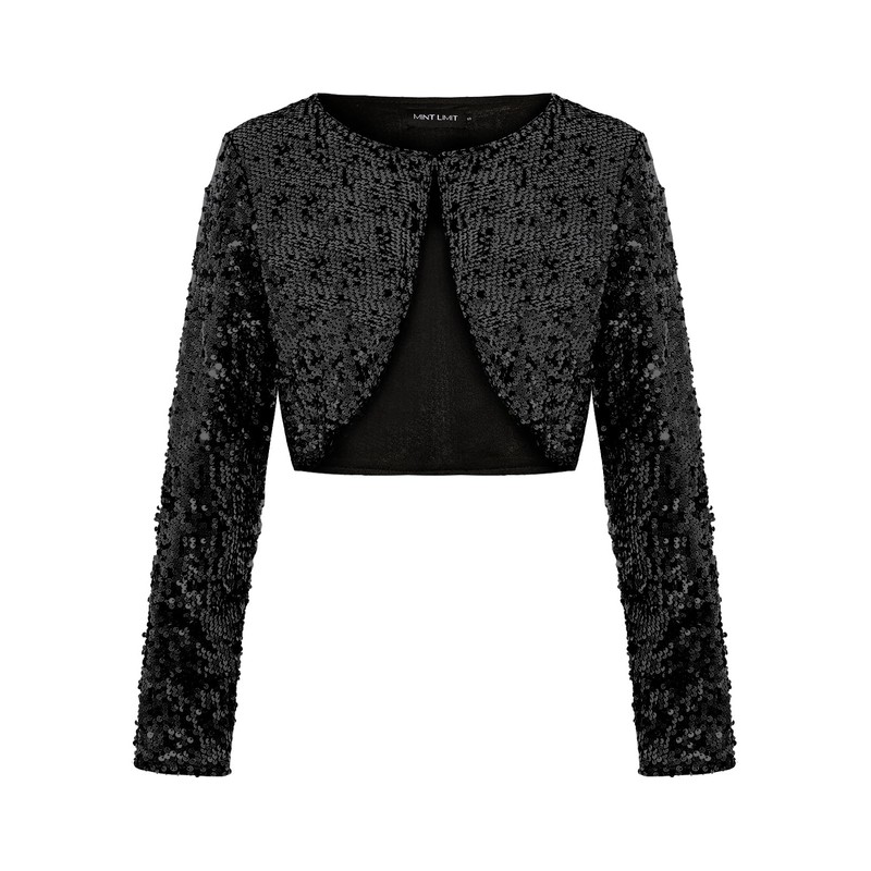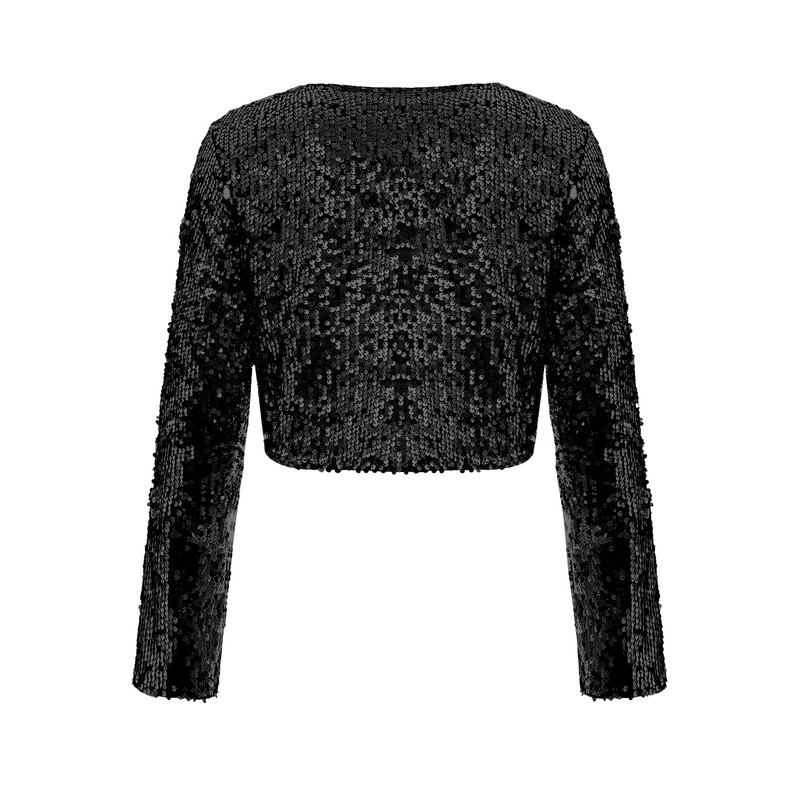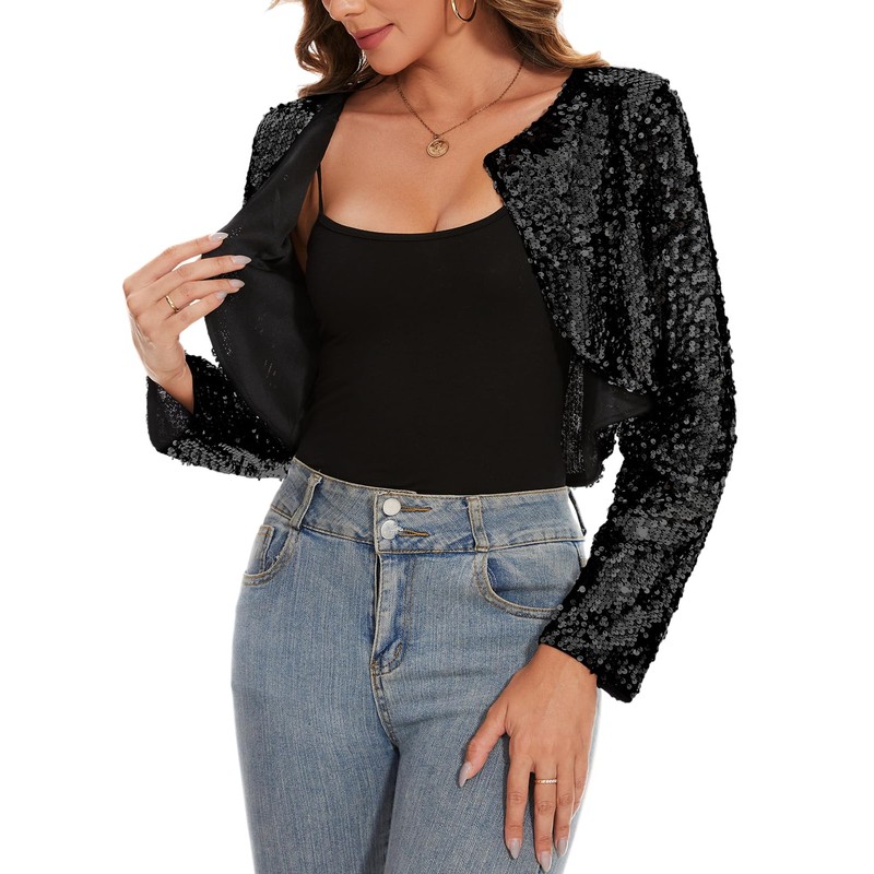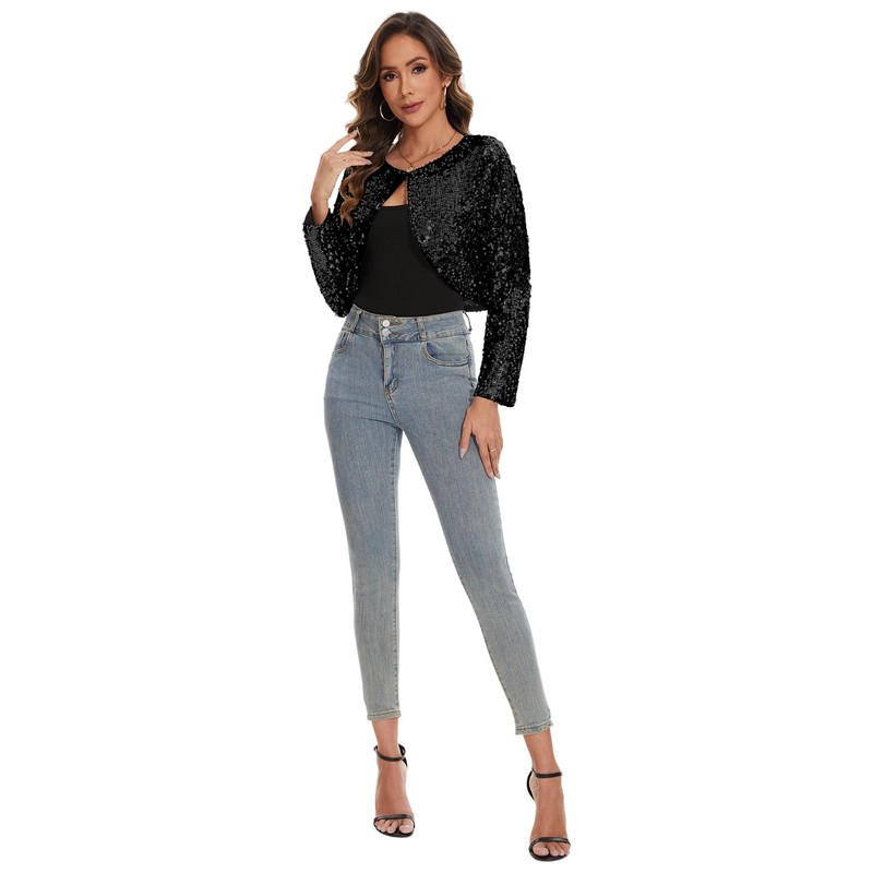 MINTLIMIT Sequin Cardigan Women's Short Open Cardigan Long Sleeve Bolero Thin Elegant Hook Jacket Bolero Jacket Glitter, B-black