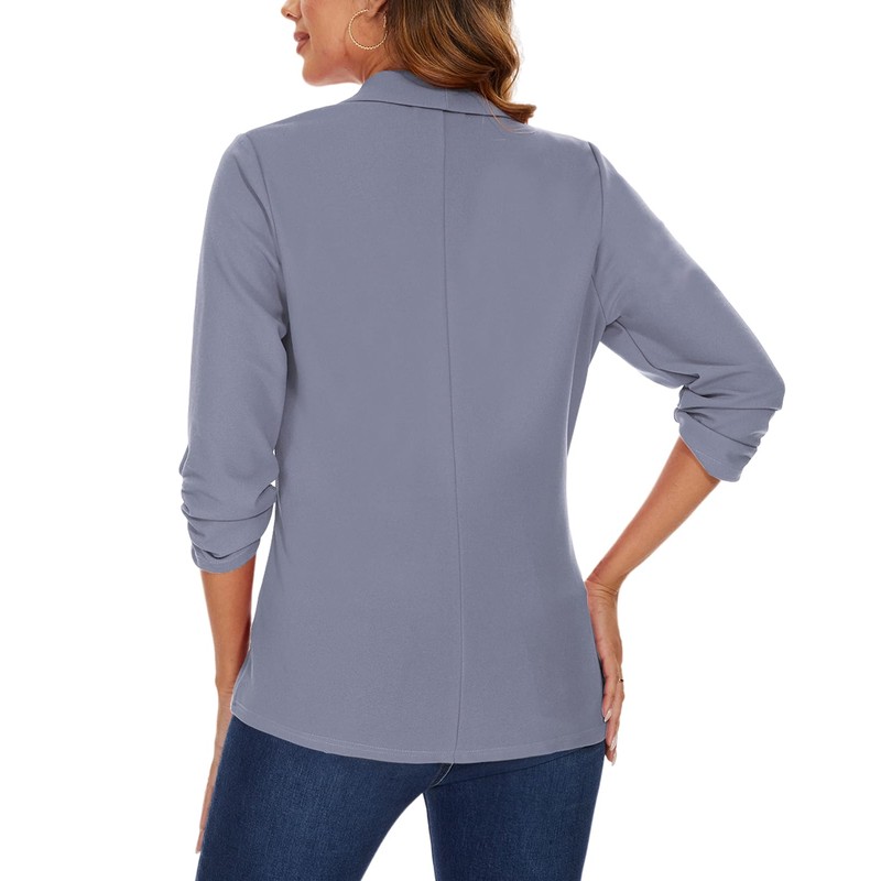 MINTLIMIT Women's 3/4 Ruched Sleeve Open Front Cardigan Office Suits & Blazers with Zipper Pockets (Grey L)