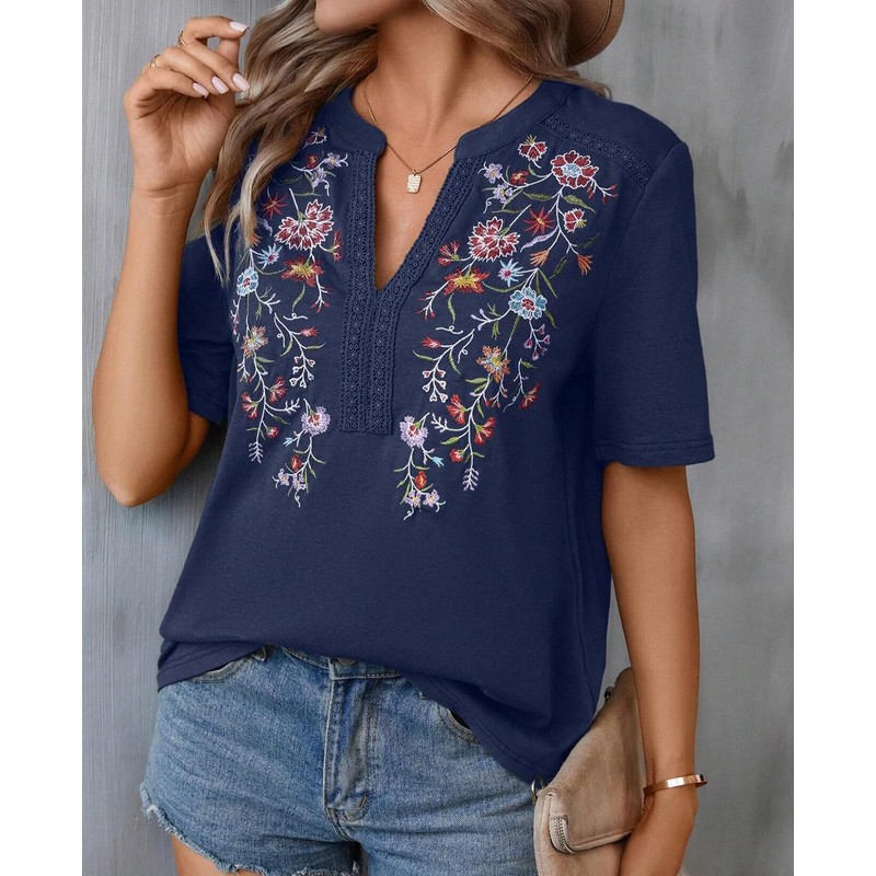 - 【Match】Women's Boho Embroidered Tops. The trendy short sleeve top is perfect pair with legging, jeans, shorts, dress pants, skirt, slacks, wear with delicate necklace, earrings to make you more exquisite and charming.