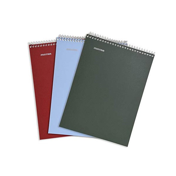 Mintra Office TOP BOUND Durable Spiral Notebooks (Arctic Ice, Chili Oil, Green Olive, College Ruled 3pk)