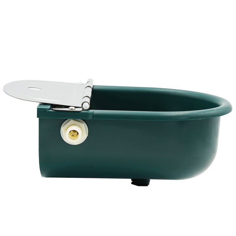 MINYULUA Automatic Waterer Bowl Large Horse Waterer with Float Valve and Drain Plug Automatic Water Feeder Dispenser Bowl for Sheep Dog Horse Cow Pig Plastic (dark green)