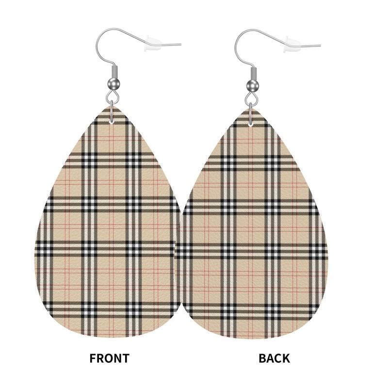 MIOAOSRT Traditional Plaid Earrings Scottish Tartan Faux Leather Earrings Leaf Earring Teardrop Dangle Earrings for Women