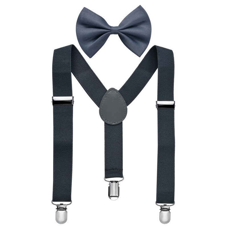 Miobo Unisex Kids Bow Tie Braces - Stylish and Practical with Three Clips, charcoal