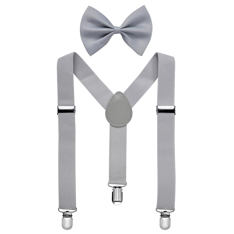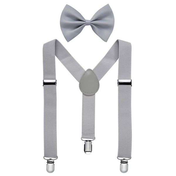 Miobo Unisex Kids Bow Tie Braces - Stylish and Practical with Three Clips, gray